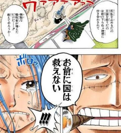 Crocodile: “Stopping a rebellion. Saving a kingdom. I got dragged along by your pathetic ideals.” “All you did was pile up pointless victims……!!! Want me to tell you something……?”