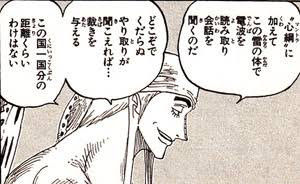 “Along with Mantra (Observation Haki), I use this lightning body to read radio waves and hear conversations.”