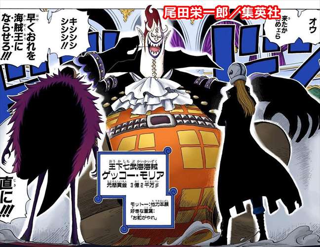 Gecko Moria “Oh! You finally showed up, huh?!” “Kishishishishi!!! Hurry up and make me the Pirate King!!!!!”