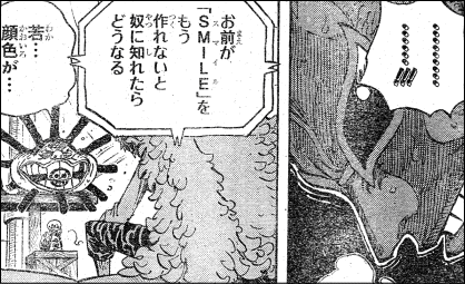 “If Kaido finds out that you can’t make SMILE—the artificial Devil Fruits you export to him—do you have any idea what’ll happen to you?”