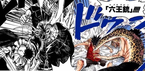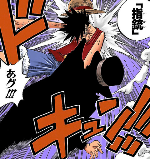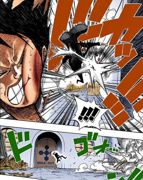 Rob Lucci: “Finger Pistol.” Luffy: “Aggh!!!!!!”