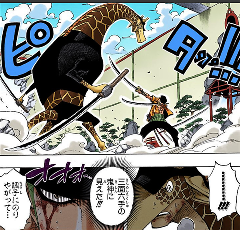Kaku: “………………!!!” “(Zoro looked like a three-faced, six-armed demon god!!!)” Zoro: “Don’t get cocky………”