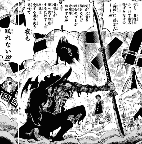 “Saving your brother?! Don’t spout pretty words, you trash of society!!! Just by sailing the seas and existing… you make ordinary people live in fear of losing the ones they love…!!!”