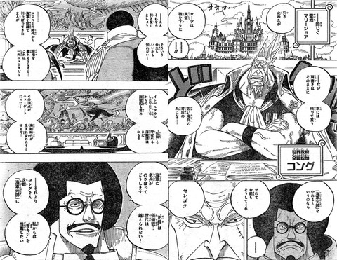 Fleet Admiral Kong, Admiral Sengoku, Zephyr, Vice Admiral Garp, Tsuru,