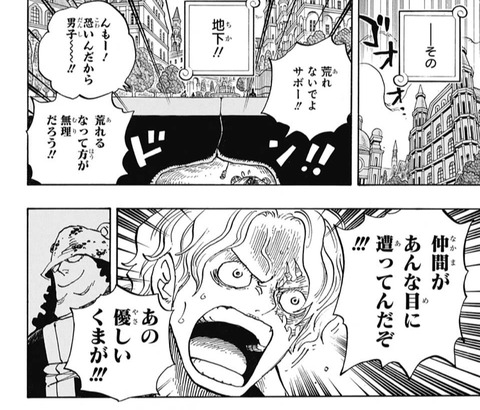 Koala “Calm down, Sabo!!!” Ivankov “Oh my! That’s scary—boys~~~~~~!!!” Sabo “How am I supposed to stay calm?!” “Our comrade went through something like that!!!” “That kind-hearted Kuma!!!”