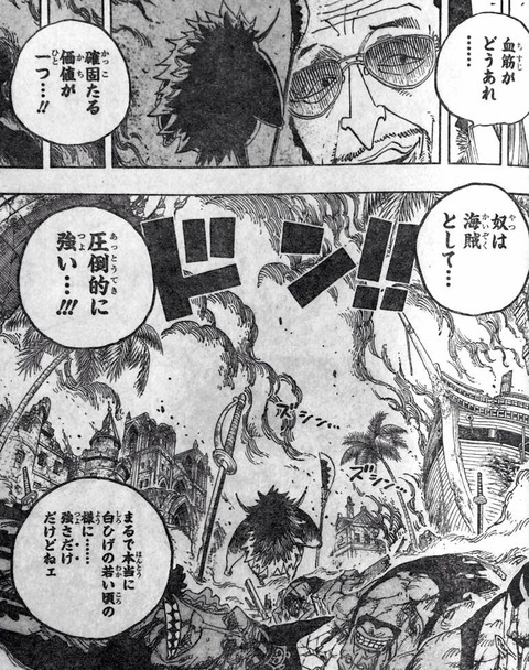 Kizaru: “Regardless of bloodline… there’s one undeniable fact…!! That guy (Edward Weevil) is… overwhelmingly strong as a pirate…!!! It’s almost like Whitebeard in his younger days… well, only in terms of strength, though.”
