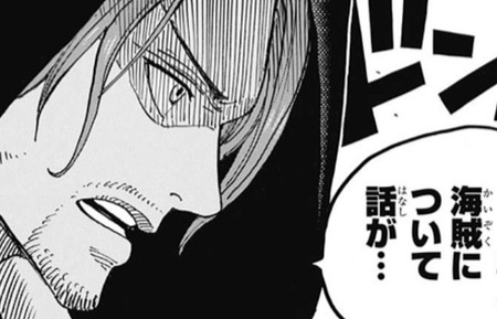 Shanks: “Uh… I’d like to talk about a certain pirate…”