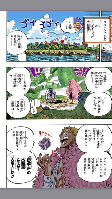 Go reread Doflamingo’s backstory and the Fish-Man Island flashback.